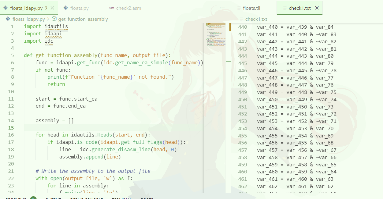 - idapython 스크립트로 어셈블리 잡아옴